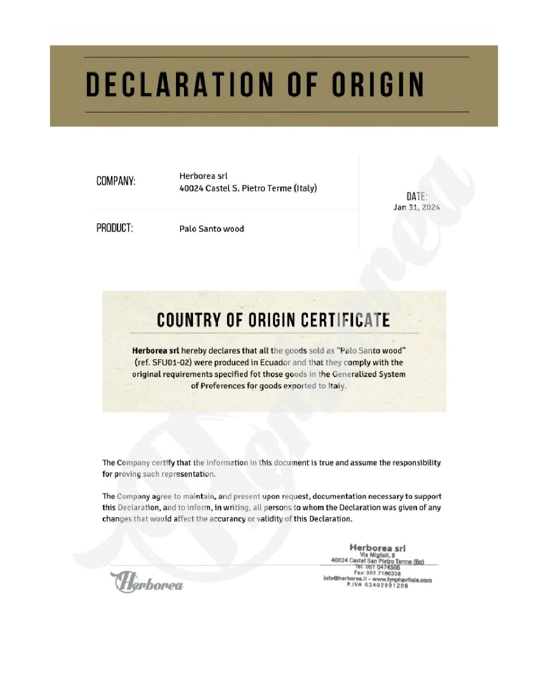 This product comes with a Declaration of Origin, officially certifying its Ecuadorian provenance.
